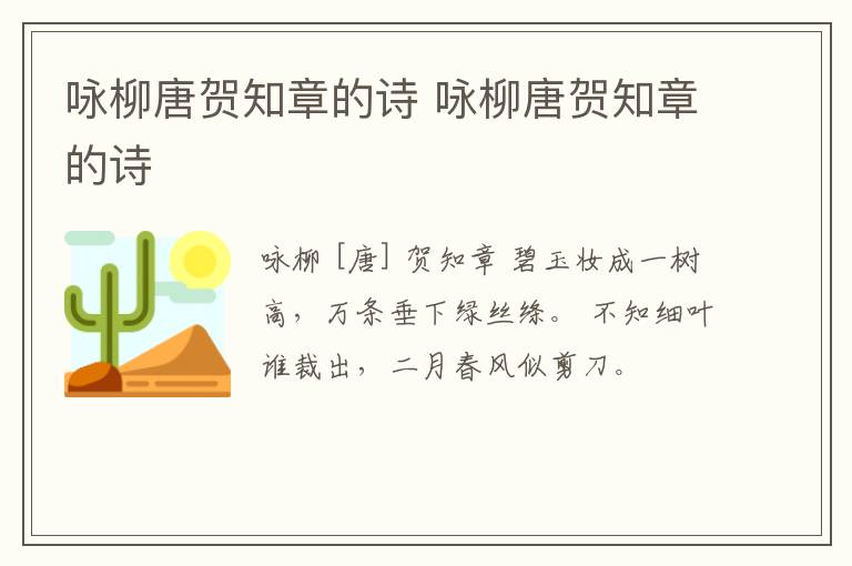 《咏柳》是盛唐诗人贺知章写的一首七言绝句。这首诗是一首咏物诗。诗的前两句连用两个新美的喻象,描绘春柳的勃勃生机,葱翠袅娜;后两句更别出心裁地把春风比喻为“剪刀”,将视之无形不可捉摸的“春风”形象地表现出来,不仅立意新奇,而且饱含韵味。