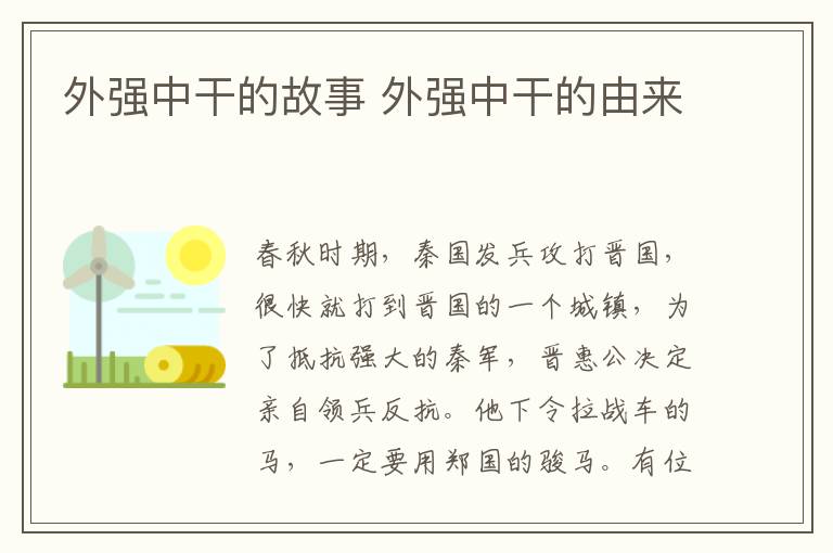 春秋时期,秦国发兵攻打晋国,很快就打到晋国的一个城镇,为了抵抗强大的秦军,晋惠公决定亲自领兵反抗。他下令拉战车的马,一定要用郑国的骏马。有位大臣看到,连忙对晋惠公说:“郑国的马看起来虽然很强壮,但是实际上却很虚弱,打起仗来一紧张就会不听指挥。到那时,进退不得,大王还是不要做此决定吧!”但是晋惠公一点都不愿意听大臣的劝告,果然,开战没多久晋惠公的马就不听指挥,而晋惠公也一下就被秦军捉住,当了俘虏,晋国因此而大败。