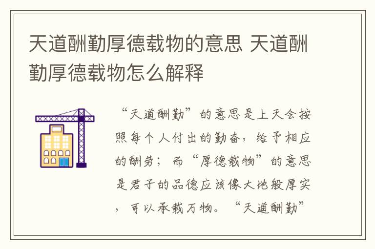 ,“天道”即“天意”,“酬”即酬谢、厚报,“勤”即勤奋、敬业。“厚德载物”出自《周易》:“君子以厚德载物。”