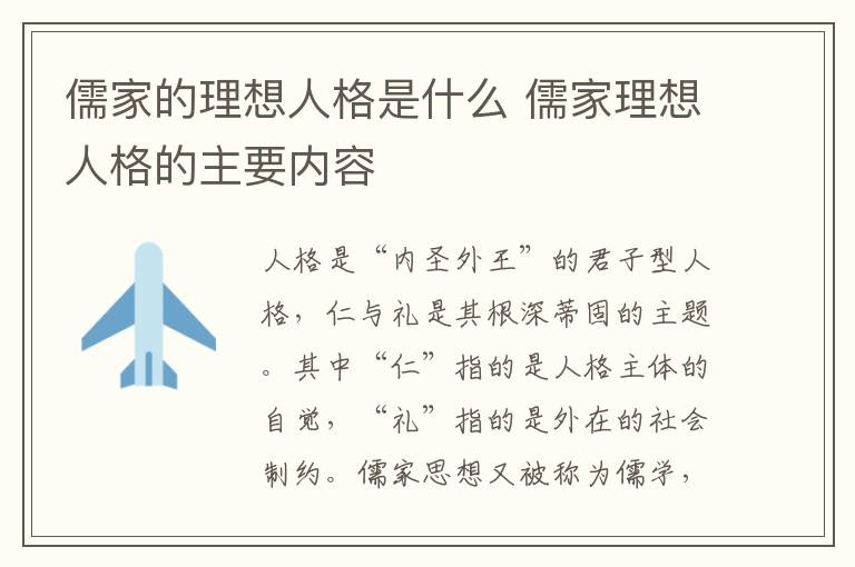 儒家的理想人格是“内圣外王”的君子型人格,仁与礼是其根深蒂固的主题。其中“仁”指的是人格主体的自觉,“礼”指的是外在的社会制约。