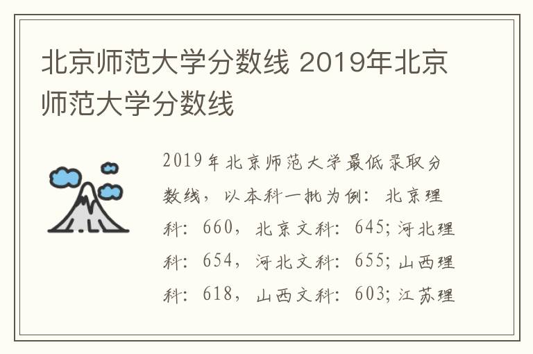 2019年北京师范大学最低录取分数线,以本科一批为例:北京理科:660,北京文科:645;河北理科:654,河北文科:655;山西理科:618,山西文科:603;江苏理科:394,江苏文科389。