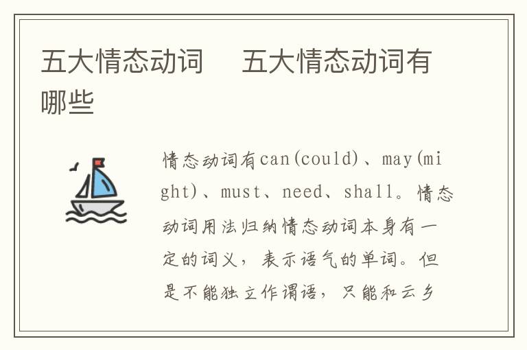 情态动词有can(could)、may(might)、must、need、shall。情态动词用法归纳情态动词本身有一定的词义,表示语气的单词。但是不能独立作谓语,只能和云乡起构成请语。情态动词用在行为动词前,表示说话人对这一动作或状态的看法或主观设想。情态动词虽然数量不多,但用途广泛。