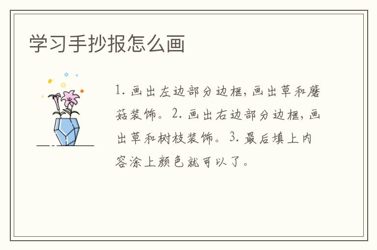 学习手抄报怎么画简单又漂亮 知识分享 4月7日 编辑 童画 取消关注 关注 私信 1.画出左边部分边框,画出草和蘑菇装饰。 2.画出右边部分边框,画出草和树枝装饰。 3.最后填上内容涂上颜色就可以了。 No related posts. 本文内容由互联网用户自发贡献,该文观点仅代表作者本人。本站仅提供信息存储空间服务,不拥有所有权,不承担相关法律责任。如发现本站有涉嫌抄袭侵权/违法违规的内容, 请发送邮件至 2245678901@qq.com 举报,一经查实,本站将立刻删除。 给TA打赏 共{{data.count}}人 人已打赏