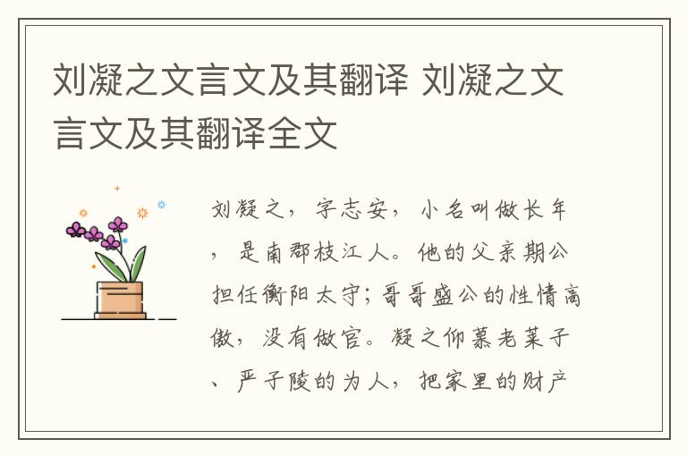 刘凝之,字志安,小名长年,南郡枝江人也。父期公,衡阳太守。兄盛公,高尚不仕。凝之慕老莱、严子陵为人,推家财与弟及兄子,立屋于野外,非其力不食。州里重其德行。州三礼辟西曹主簿,不就。妻梁州刺史郭铨女也,遣送丰丽,凝之悉散之亲属。妻亦能不慕荣华,与凝之共安俭苦。(选自《宋书·隐逸列传》)