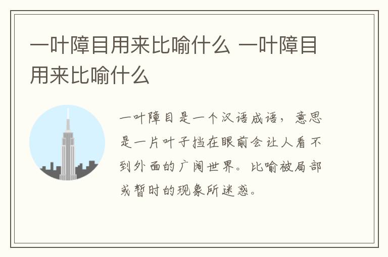 一叶障目用来比喻什么 一叶障目用来比喻什么 知识分享 24年12月19日 编辑 童画 取消关注 关注 私信 一叶障目是一个汉语成语,意思是一片叶子挡在眼前会让人看不到外面的广阔世界。比喻被局部或暂时的现象所迷惑。 No related posts. 本文内容由互联网用户自发贡献,该文观点仅代表作者本人。本站仅提供信息存储空间服务,不拥有所有权,不承担相关法律责任。如发现本站有涉嫌抄袭侵权/违法违规的内容, 请发送邮件至 2245678901@qq.com 举报,一经查实,本站将立刻删除。 给TA打赏 共{{data.count}}人 人已打赏