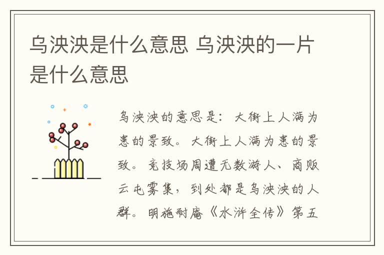 乌泱泱的意思是:大街上人满为患的景致。大街上人满为患的景致。竞技场周遭无数游人、商贩云屯雾集,到处都是乌泱泱的人群。明施耐庵《水浒全传》第五十一回每日有那一般打散,或是戏舞,或是吹弹,或是歌唱,赚得那人山人海价看。