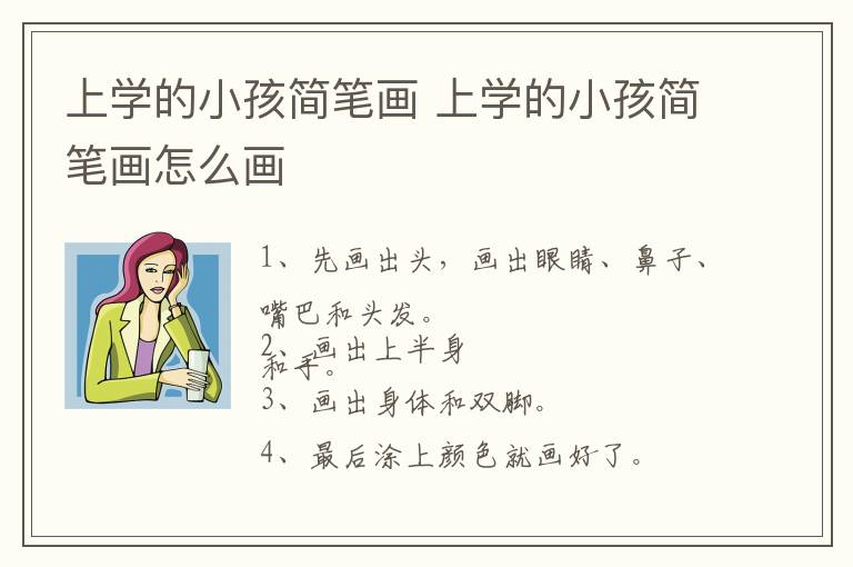 上学的小孩简笔画 上学的小孩简笔画怎么画简单又漂亮 知识分享 24年12月24日 编辑 童画 取消关注 关注 私信 1、先画出头,画出眼睛、鼻子、嘴巴和头发。 2、画出上半身和手。 3、画出身体和双脚。 4、最后涂上颜色就画好了。 No related posts. 本文内容由互联网用户自发贡献,该文观点仅代表作者本人。本站仅提供信息存储空间服务,不拥有所有权,不承担相关法律责任。如发现本站有涉嫌抄袭侵权/违法违规的内容, 请发送邮件至 2245678901@qq.com 举报,一经查实,本站将立刻删除。 给TA打赏 共{{data.count}}人 人已打赏