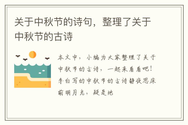 本文中,小编为大家整理了关于中秋节的古诗,一起来看看吧!