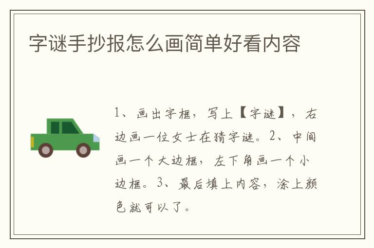 字谜手抄报怎么画简单好看内容简单又漂亮 知识分享 24年12月24日 编辑 童画 取消关注 关注 私信 1、画出字框,写上【字谜】,右边画一位女士在猜字谜。 2、中间画一个大边框,左下角画一个小边框。 3、最后填上内容,涂上颜色就可以了。 No related posts. 本文内容由互联网用户自发贡献,该文观点仅代表作者本人。本站仅提供信息存储空间服务,不拥有所有权,不承担相关法律责任。如发现本站有涉嫌抄袭侵权/违法违规的内容, 请发送邮件至 2245678901@qq.com 举报,一经查实,本站将立刻删除。 给TA打赏 共{{data.count}}人 人已打赏