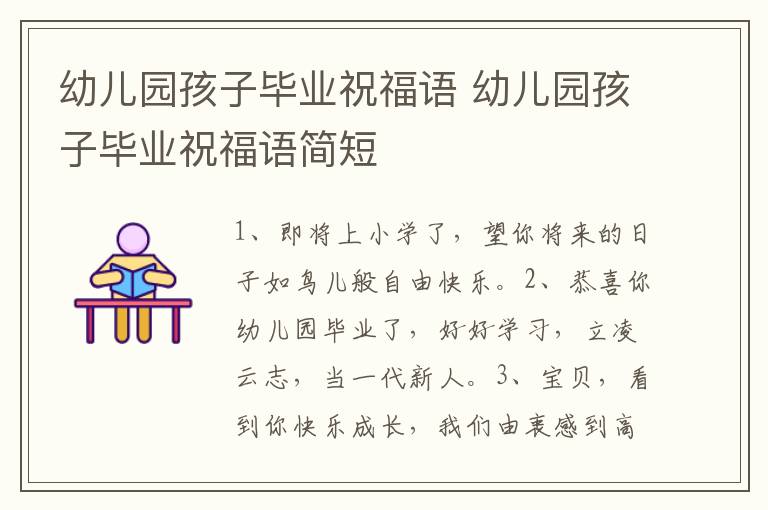 幼儿园孩子毕业祝福语:1、即将上小学了,望你将来的日子如鸟儿般自由快乐。2、恭喜你幼儿园毕业了,好好学习,立凌云志,当一代新人。3、宝贝,看到你快乐成长,我们由衷感到高兴。4、我可爱的孩子,带上我们的期盼和祝福,自信地走进小学。5、愿你的明天无限美丽、无限灿烂、无限迷人。