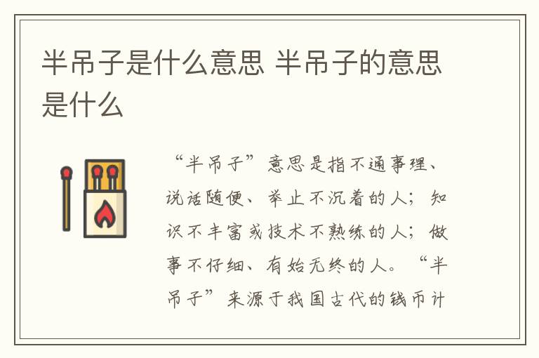 “半吊子”意思是指不通事理、说话随便、举止不沉着的人;知识不丰富或技术不熟练的人;做事不仔细、有始无终的人。