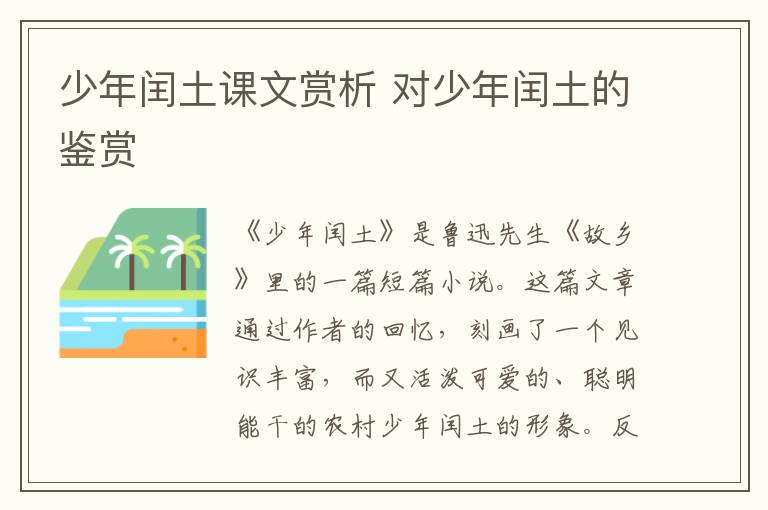 《少年闰土》是鲁迅先生《故乡》里的一篇短篇小说,这篇文章通过作者的回忆,刻画了一个见识丰富,而又活泼可爱的、聪明能干的农村少年闰土的形象,反映了作者与闰土儿时真挚而又短暂的友谊以及对他的怀念之情。