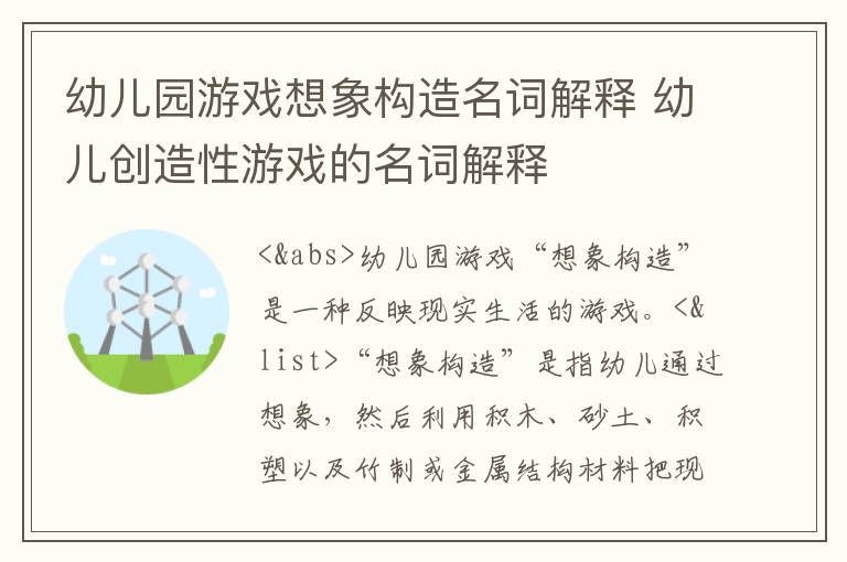 幼儿园游戏“想象构造”是一种反映现实生活的游戏。“想象构造”是指幼儿通过想象,然后利用积木、砂土、积塑以及竹制或金属结构材料把现实生活的建筑物体形象再现出来,从而反映现实生活的游戏。幼儿在具体的游戏实践中,其兴趣不但能够得到有效的激发,同时必然融入了个人独特的想象力和创造力。