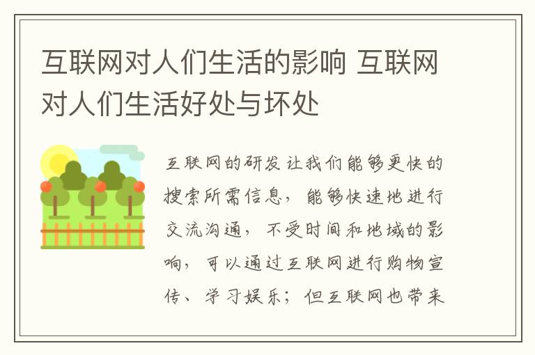 互联网对人们生活的影响 互联网对人们生活好处与坏处 知识分享 1月10日 编辑 童画 取消关注 关注 私信 互联网的研发让我们能够更快的搜索所需信息,能够快速地进行交流沟通,不受时间和地域的影响,可以通过互联网进行购物宣传、学习娱乐;但互联网也带来了许多坏处,长时间的上网会影响我们身体和心理的健康,网上的过多交流,也会减少现实生活中的联系,使人与人之间的关系变得疏远。 No related posts. 本文内容由互联网用户自发贡献,该文观点仅代表作者本人。本站仅提供信息存储空间服务,不拥有所有权,不承担相关法律责任。如发现本站有涉嫌抄袭侵权/违法违规的内容, 请发送邮件至 2245678901@qq.com 举报,一经查实,本站将立刻删除。 给TA打赏 共{{data.count}}人 人已打赏