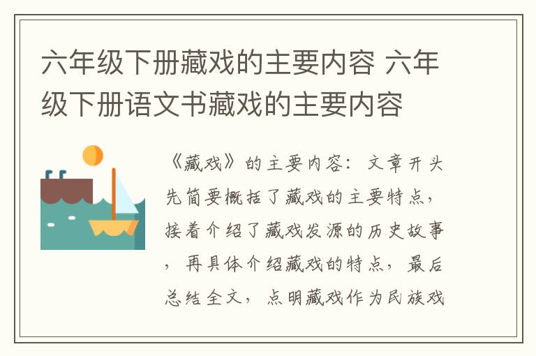 《藏戏》的主要内容:文章开头先简要概括了藏戏主要特点,接着介绍了藏戏发源的历史故事,再具体介绍藏戏的特点,最后总结全文,点明藏戏作为民族戏剧艺术的传承性。