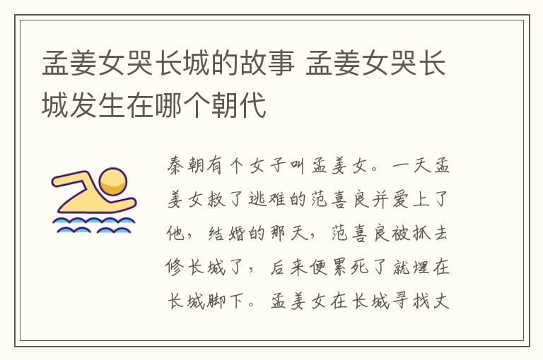 秦朝有个善良美丽的女子叫孟姜女。有一天,孟姜女救了逃难范喜良,并对他产生了爱慕之情,两人准备结为夫妻。