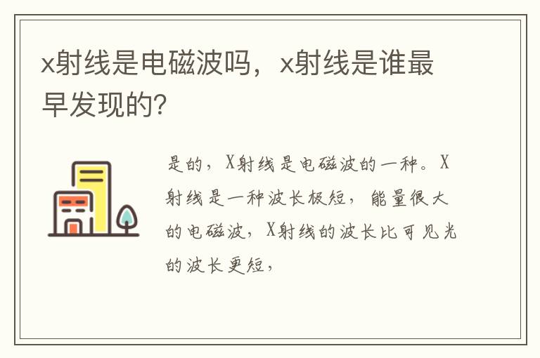 是的,X射线是电磁波的一种。X射线是一种波长极短,能量很大的电磁波,X射线的波长比可见光的波长更短,它的光子能量比可见光的光子能量大几万至几十万倍。由德国物理学家W.K.伦琴于1895年发现,故又称伦琴射线。