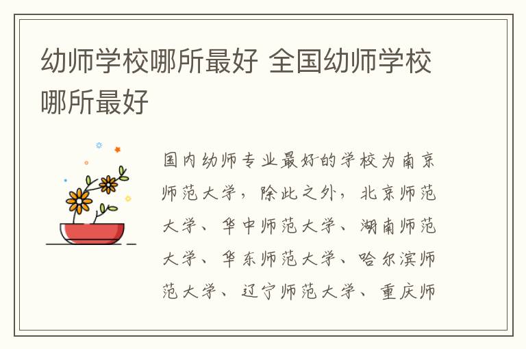 国内幼师专业最好的学校为南京师范大学,除此之外,北京师范大学、华中师范大学、湖南师范大学、华东师范大学、哈尔滨师范大学、辽宁师范大学、重庆师范大学的幼师专业都十分出色。