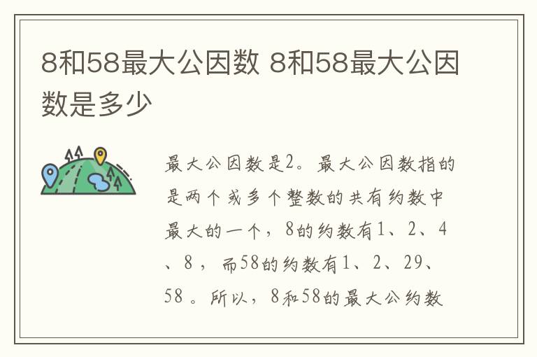 8和58最大公因数 8和58最大公因数是多少 知识分享 1月6日 编辑 童画 取消关注 关注 私信 8和58最大公因数是2。最大公因数指的是两个或多个整数的共有约数中最大的一个,8的约数有1、2、4、8 ,而58的约数有1、2、29、58 。所以,8和58的最大公约数是2。 最大公因数,也称为最大公约数,指的是两个或多个整数共有约数中最大的一个,与最大公因数相对应的概念是最小公倍数。 No related posts. 本文内容由互联网用户自发贡献,该文观点仅代表作者本人。本站仅提供信息存储空间服务,不拥有所有权,不承担相关法律责任。如发现本站有涉嫌抄袭侵权/违法违规的内容, 请发送邮件至 2245678901@qq.com 举报,一经查实,本站将立刻删除。 给TA打赏 共{{data.count}}人 人已打赏