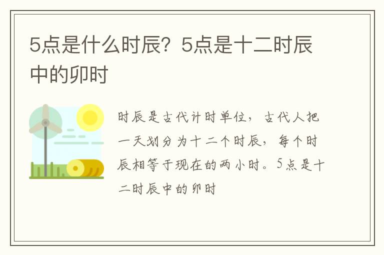 时辰是古代计时单位,古代人把一天划分为十二个时辰,每个时辰相等于现在的两小时。5点是十二时辰中的卯时。