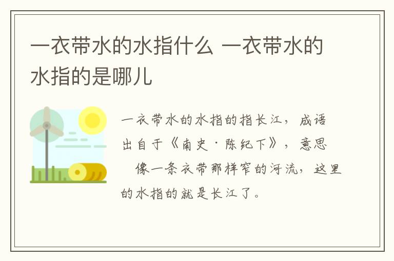 一衣带水的水指的指长江,成语出自于《南史·陈纪下》,意思是像一条衣带那样窄的河流,这里的水指的就是长江了。