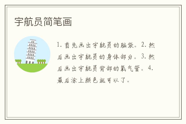 宇航员简笔画 知识分享 1月7日 编辑 童画 取消关注 关注 私信 1.首先画出宇航员的脑袋。 2.然后画出宇航员的身体部分。 3.然后画出宇航员背部的氧气管。 4.最后涂上颜色就可以了。 No related posts. 本文内容由互联网用户自发贡献,该文观点仅代表作者本人。本站仅提供信息存储空间服务,不拥有所有权,不承担相关法律责任。如发现本站有涉嫌抄袭侵权/违法违规的内容, 请发送邮件至 2245678901@qq.com 举报,一经查实,本站将立刻删除。 给TA打赏 共{{data.count}}人 人已打赏