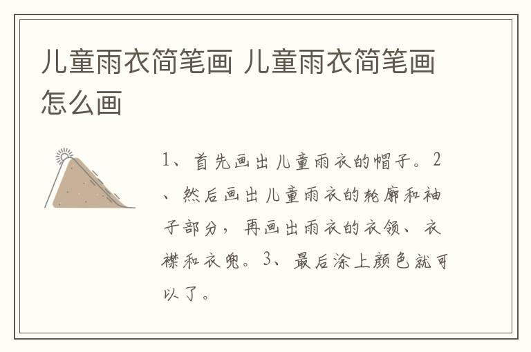 儿童雨衣简笔画 儿童雨衣简笔画怎么画简单又漂亮 知识分享 1月14日 编辑 童画 取消关注 关注 私信 1、首先画出儿童雨衣的帽子。 2、然后画出儿童雨衣的轮廓和袖子部分,再画出雨衣的衣领、衣襟和衣兜。 3、最后涂上颜色就可以了。 No related posts. 本文内容由互联网用户自发贡献,该文观点仅代表作者本人。本站仅提供信息存储空间服务,不拥有所有权,不承担相关法律责任。如发现本站有涉嫌抄袭侵权/违法违规的内容, 请发送邮件至 2245678901@qq.com 举报,一经查实,本站将立刻删除。 给TA打赏 共{{data.count}}人 人已打赏
