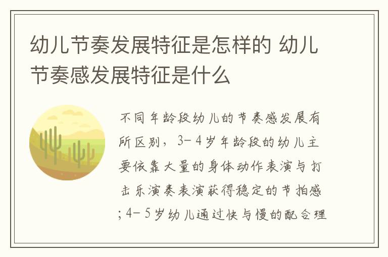 不同年龄段幼儿的节奏感发展有所区别,3- 4岁年龄段的幼儿主要依靠大量的身体动作表演与打击乐演奏表演获得稳定的节拍感;4-