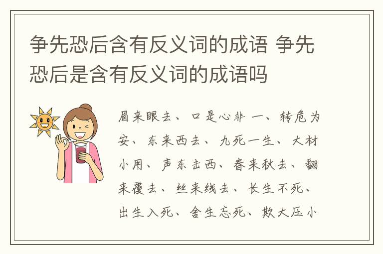像“争先恐后”这样含有反义词的成语有:眉来眼去、口是心非