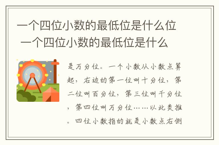 一个四位小数的最低位是什么位 一个四位小数的最低位是什么 知识分享 1月6日 编辑 童画 取消关注 关注 私信 一个四位小数的最低位是万分位。 一个小数从小数点算起,右边的第一位叫十分位,第二位叫百分位,第三位叫千分位,第四位叫万分位……以此类推。四位小数指的就是小数点右侧有4个数字,比如四位小数9.5123的十分位是5,百分位是1,千分位是2,万分位是3。 No related posts. 本文内容由互联网用户自发贡献,该文观点仅代表作者本人。本站仅提供信息存储空间服务,不拥有所有权,不承担相关法律责任。如发现本站有涉嫌抄袭侵权/违法违规的内容, 请发送邮件至 2245678901@qq.com 举报,一经查实,本站将立刻删除。 给TA打赏 共{{data.count}}人 人已打赏