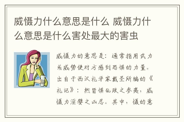 威慑力的意思是:通常指用武力或威势使对方感到恐惧的力量。出自于西汉礼学家戴圣所编的《礼记》:然皆惧乱政之参夷,威慑力淫嬖之凶忍。其中,“慑”的意思有害怕、恐惧、威服。