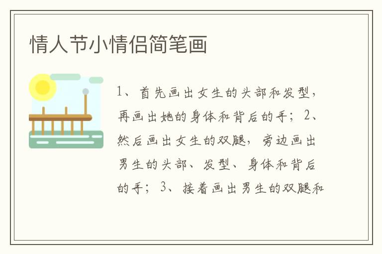 情人节小情侣简笔画 知识分享 1月7日 编辑 童画 取消关注 关注 私信 1、首先画出女生的头部和发型,再画出她的身体和背后的手; 2、然后画出女生的双腿,旁边画出男生的头部、发型、身体和背后的手; 3、接着画出男生的双腿和手里拿着的玫瑰花; 4、最后涂上颜色就可以了。 No related posts. 本文内容由互联网用户自发贡献,该文观点仅代表作者本人。本站仅提供信息存储空间服务,不拥有所有权,不承担相关法律责任。如发现本站有涉嫌抄袭侵权/违法违规的内容, 请发送邮件至 2245678901@qq.com 举报,一经查实,本站将立刻删除。 给TA打赏 共{{data.count}}人 人已打赏