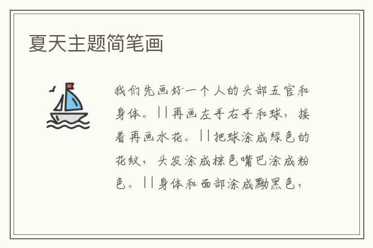 夏天主题简笔画 知识分享 1月14日 编辑 童画 取消关注 关注 私信 1.我们先画好一个人的头部五官和身体 2.再画左手右手和球,接着再画水花 3.把球涂成绿色的花纹,头发涂成棕色嘴巴涂成粉色 4.身体和面部涂成黝黑色,最后把身边的水花涂成蓝色就可以了 No related posts. 本文内容由互联网用户自发贡献,该文观点仅代表作者本人。本站仅提供信息存储空间服务,不拥有所有权,不承担相关法律责任。如发现本站有涉嫌抄袭侵权/违法违规的内容, 请发送邮件至 2245678901@qq.com 举报,一经查实,本站将立刻删除。 给TA打赏 共{{data.count}}人 人已打赏