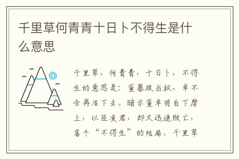 千里草,何青青,十日卜,不得生的意思是:董暴政当权,卓不会再活下去。暗示董卓将自下摩上,以臣凌君,却又迅速败亡,落个“不得生”的结局。