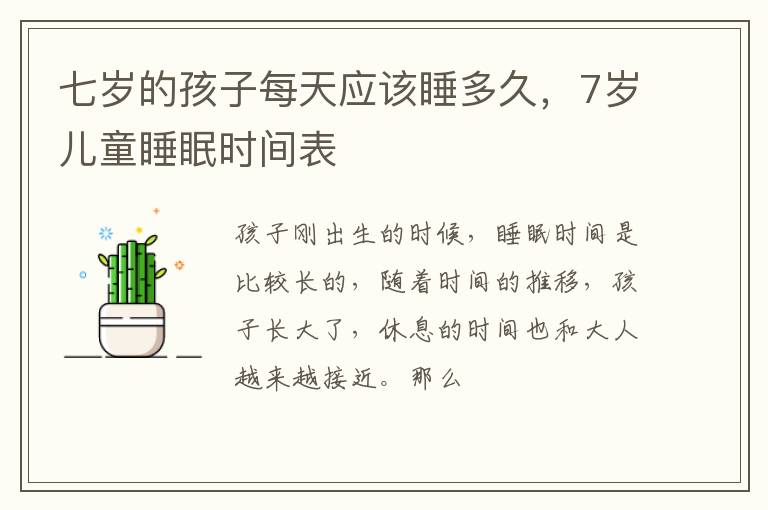 孩子刚出生的时候,睡眠时间是比较长的,随着时间的推移,孩子长大了,休息的时间也和大人越来越接近。那么七岁的孩子每天应该睡多久呢?什么时候休息比较好呢?跟着小编一起来看看吧!