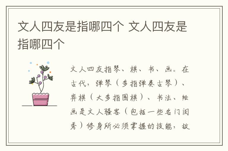 文人四友是指哪四个 文人四友是指哪四个 知识分享 1月25日 编辑 童画 取消关注 关注 私信 文人四友指琴、棋、书、画。在古代,弹琴(多指弹奏古琴)、弈棋(大多指围棋)、书法、绘画是文人骚客(包括一些名门闺秀)修身所必须掌握的技能,故合称琴棋书画,即“文人四友”。今常表示个人的文化素养。 No related posts. 本文内容由互联网用户自发贡献,该文观点仅代表作者本人。本站仅提供信息存储空间服务,不拥有所有权,不承担相关法律责任。如发现本站有涉嫌抄袭侵权/违法违规的内容, 请发送邮件至 2245678901@qq.com 举报,一经查实,本站将立刻删除。 给TA打赏 共{{data.count}}人 人已打赏