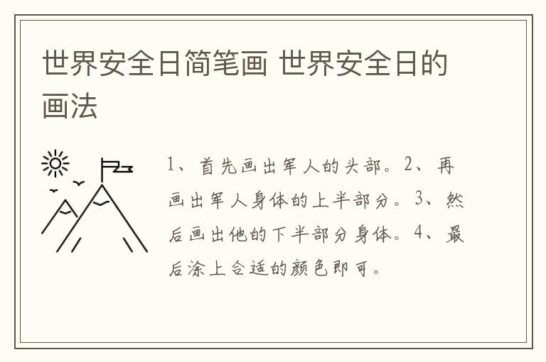 世界安全日简笔画 世界安全日的画法 知识分享 1月25日 编辑 童画 取消关注 关注 私信 1、首先画出军人的头部。 2、再画出军人身体的上半部分。 3、然后画出他的下半部分身体。 4、最后涂上合适的颜色即可。 No related posts. 本文内容由互联网用户自发贡献,该文观点仅代表作者本人。本站仅提供信息存储空间服务,不拥有所有权,不承担相关法律责任。如发现本站有涉嫌抄袭侵权/违法违规的内容, 请发送邮件至 2245678901@qq.com 举报,一经查实,本站将立刻删除。 给TA打赏 共{{data.count}}人 人已打赏