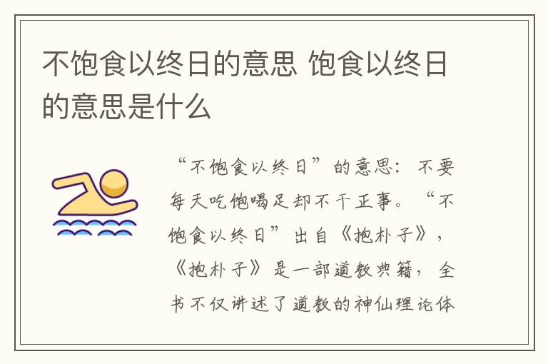 “不饱食以终日”的意思:不要每天吃饱喝足却不干正事。“不饱食以终日”出自《抱朴子》,《抱朴子》是一部道教典籍,全书不仅讲述了道教的神仙理论体系,也论述了关于时政得失与人事臧否的道理。