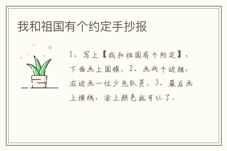 我和祖国有个约定手抄报 知识分享 1月31日 编辑 童画 取消关注 关注 私信 1、写上【我和祖国有个约定】,下面画上国旗。 2、画两个边框,右边画一位少先队员。 3、最后画上横线,涂上颜色就可以了。 No related posts. 本文内容由互联网用户自发贡献,该文观点仅代表作者本人。本站仅提供信息存储空间服务,不拥有所有权,不承担相关法律责任。如发现本站有涉嫌抄袭侵权/违法违规的内容, 请发送邮件至 2245678901@qq.com 举报,一经查实,本站将立刻删除。 给TA打赏 共{{data.count}}人 人已打赏