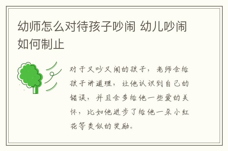 对于又吵又闹的孩子,老师会给孩子讲道理,让他认识到自己的错误,并且会多给他一些爱的关怀,比如他进步了给他一朵小红花等类似的奖励。