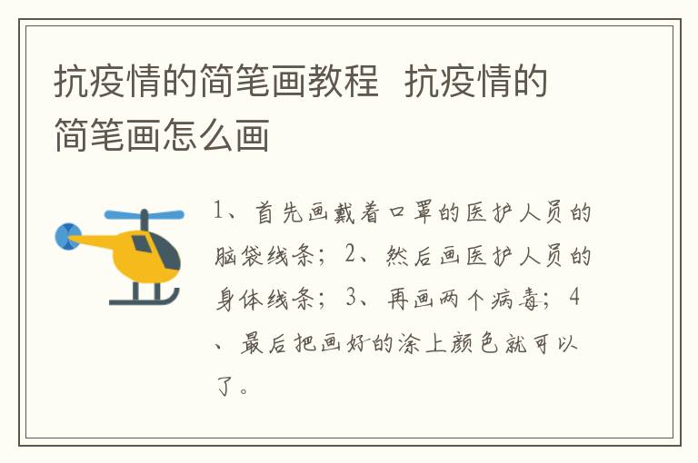 抗疫情的简笔画教程 抗疫情的简笔画怎么画简单又漂亮 知识分享 1月25日 编辑 童画 取消关注 关注 私信 1、首先画戴着口罩的医护人员的脑袋线条; 2、然后画医护人员的身体线条; 3、再画两个病毒; 4、最后把画好的涂上颜色就可以了。 No related posts. 本文内容由互联网用户自发贡献,该文观点仅代表作者本人。本站仅提供信息存储空间服务,不拥有所有权,不承担相关法律责任。如发现本站有涉嫌抄袭侵权/违法违规的内容, 请发送邮件至 2245678901@qq.com 举报,一经查实,本站将立刻删除。 给TA打赏 共{{data.count}}人 人已打赏