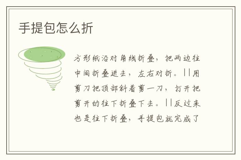 手提包怎么折 知识分享 2月2日 编辑 童画 取消关注 关注 私信 1、方形纸沿对角线折叠,把两边往中间折叠进去,左右对折。 2、用剪刀把顶部斜着剪一刀,打开把剪开的往下折叠下去。 3、反过来也是往下折叠,手提包就完成了。 No related posts. 本文内容由互联网用户自发贡献,该文观点仅代表作者本人。本站仅提供信息存储空间服务,不拥有所有权,不承担相关法律责任。如发现本站有涉嫌抄袭侵权/违法违规的内容, 请发送邮件至 2245678901@qq.com 举报,一经查实,本站将立刻删除。 给TA打赏 共{{data.count}}人 人已打赏
