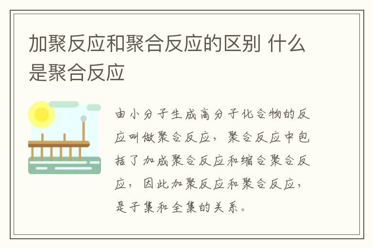 由小分子生成高分子化合物的反应叫做聚合反应。聚合反应包括两类:加成聚合反应和缩合聚合反应。