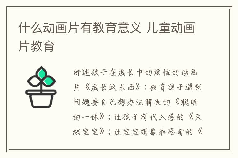 讲述孩子在成长中的烦恼的动画片《成长这东西》;教育孩子遇到问题要自己想办法解决的《聪明的一休》;让孩子有代入感的《天线宝宝》;让宝宝想象和思考的《小老虎丹尼尔》。