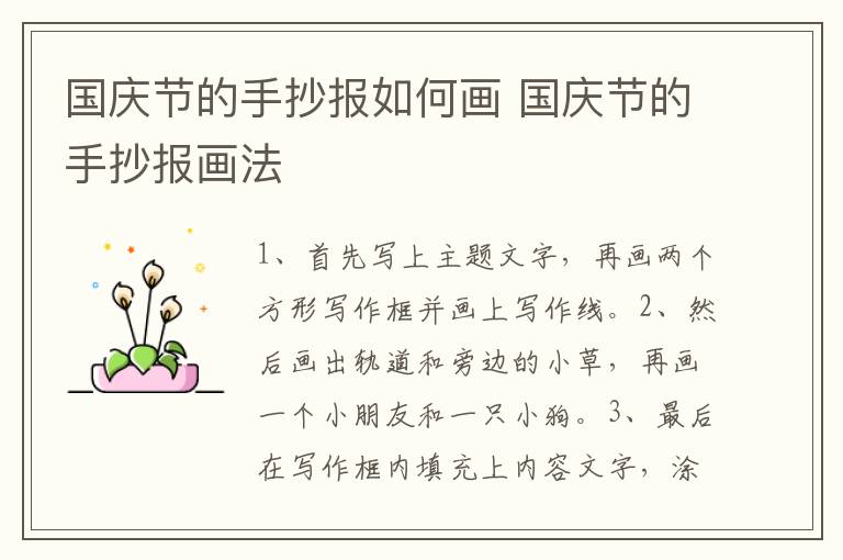 国庆节的手抄报如何画 国庆节的手抄报画法 知识分享 1月25日 编辑 童画 取消关注 关注 私信 1、首先写上主题文字,再画两个方形写作框并画上写作线。 2、然后画出轨道和旁边的小草,再画一个小朋友和一只小狗。 3、最后在写作框内填充上内容文字,涂上颜色就可以了。 No related posts. 本文内容由互联网用户自发贡献,该文观点仅代表作者本人。本站仅提供信息存储空间服务,不拥有所有权,不承担相关法律责任。如发现本站有涉嫌抄袭侵权/违法违规的内容, 请发送邮件至 2245678901@qq.com 举报,一经查实,本站将立刻删除。 给TA打赏 共{{data.count}}人 人已打赏