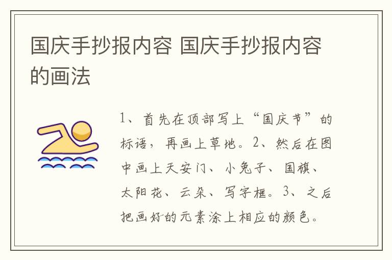 国庆手抄报内容 国庆手抄报内容的画法 知识分享 1月31日 编辑 童画 取消关注 关注 私信 1、首先在顶部写上“国庆节”的标语,再画上草地。 2、然后在图中画上天安门、小兔子、国旗、太阳花、云朵、写字框。 3、之后把画好的元素涂上相应的颜色。 4、最后在写字框内写上文字即可。 No related posts. 本文内容由互联网用户自发贡献,该文观点仅代表作者本人。本站仅提供信息存储空间服务,不拥有所有权,不承担相关法律责任。如发现本站有涉嫌抄袭侵权/违法违规的内容, 请发送邮件至 2245678901@qq.com 举报,一经查实,本站将立刻删除。 给TA打赏 共{{data.count}}人 人已打赏