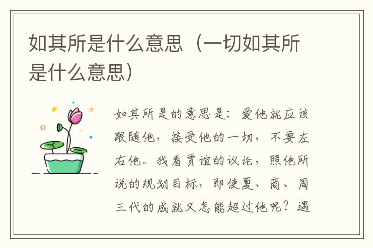 如其所是的意思是:爱他就应该跟随他,接受他的一切,不要左右他。我看贾谊的议论,照他所说的规划目标,即使夏、商、周三代的成就又怎能超过他呢?遇到像汉文帝这样的明君,尚且因未能尽才而郁郁死去,照这样说来,如果天下没有尧、舜那样的圣君。