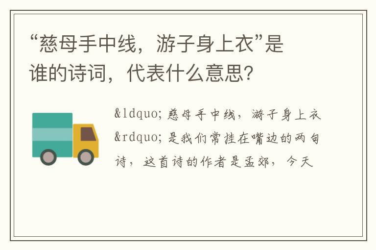 “慈母手中线,游子身上衣”是我们常挂在嘴边的两句诗,这首诗的作者是孟郊,今天就让我们一起来了解一下这位诗人吧。