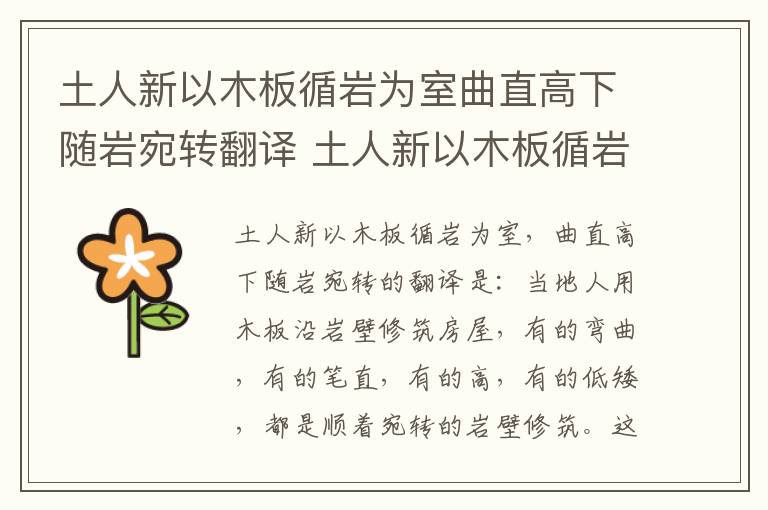土人新以木板循岩为室,曲直高下随岩宛转的翻译是:当地人用木板沿岩壁修筑房屋,有的弯曲,有的笔直,有的高,有的低矮,都是顺着宛转的岩壁修筑。这句文言文是出自《徐霞客游记》。