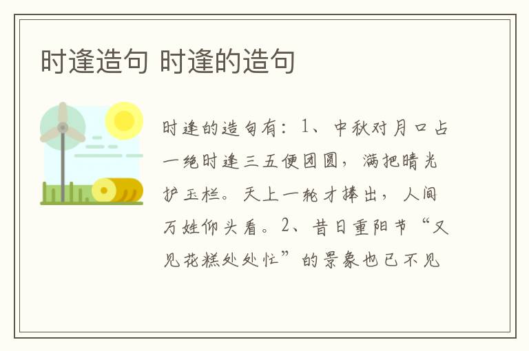 时逢的造句有:1、中秋对月口占一绝时逢三五便团圆,满把晴光护玉栏。天上一轮才捧出,人间万姓仰头看。2、昔日重阳节“又见花糕处处忙”的景象也已不见。但时逢佳节吉日,不由得又想起老邻居在庭院吃着花糕,喝着清茶说笑聊天的温馨,思念童年一起欢笑玩耍的小伙伴。3、时逢教师佳节,学生借手机短信息表达最真诚的祝福:愿老师永远青春永驻,魅力四射,考试的时候睁一只眼闭一只眼。